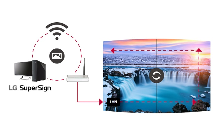 Through its built-in high performance SoC, each display plays its video tile for synchronized content playback.