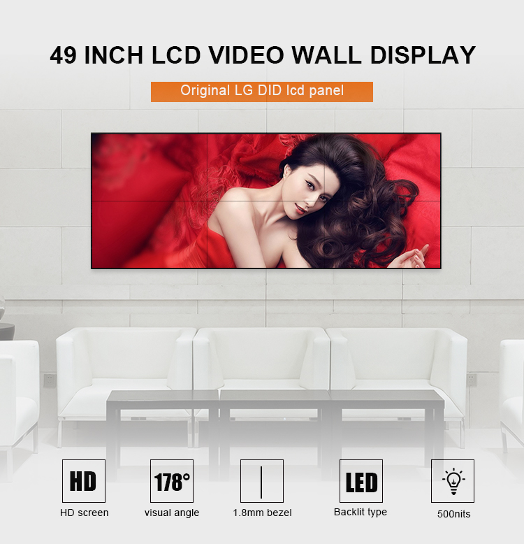 | 1 | 49" LG 1.8mm bezel | 500nits brightness,WLED Backlit,1920x1080 resolution,with 1080P HDMI input | |