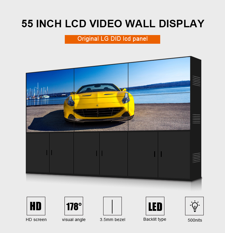 | 1 | 55" LG 3.5mm bezel | 500nits brightness,WLED Backlit,1920x1080 resolution,with 1080P HDMI input | |