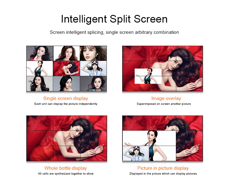 | 1 | 55" LG 0.88mm bezel | 500nits brightness,WLED Backlight,1920x1080 resolution,with 1080P HDMI input | ||