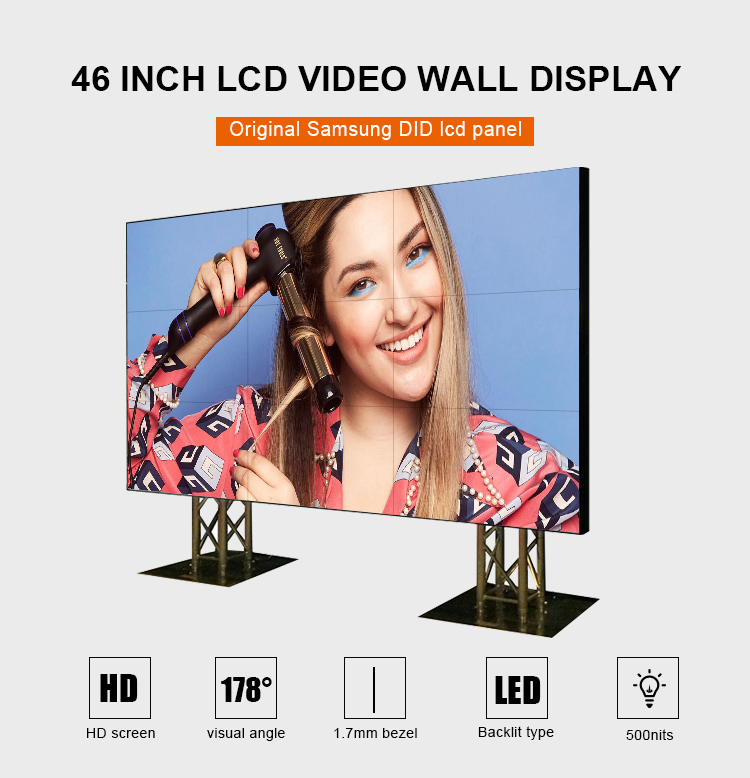 | 1 | 46" Samsung 1.7mm bezel | 500nits brightness,WLED Backlit,1920x1080 resolution,with 1080P HDMI input | |