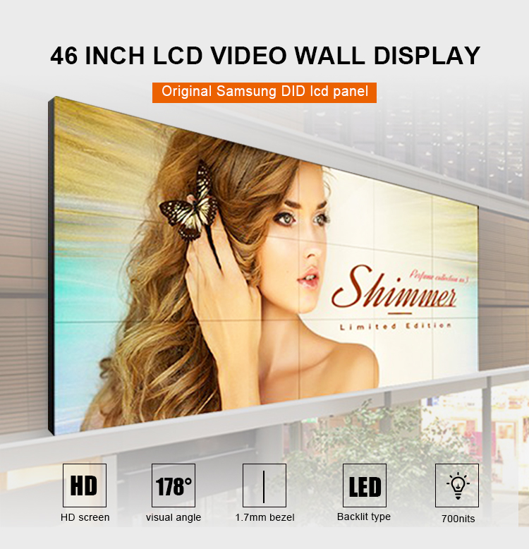| 1 | 46" Samsung 1.7mm bezel | 700nits brightness,WLED Backlit,1920x1080 resolution,with 1080P HDMI input | |