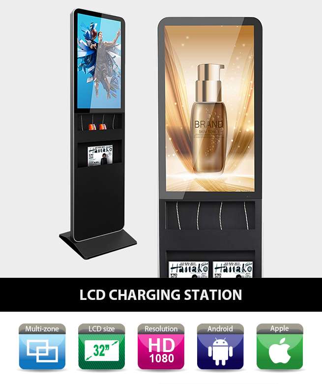 • A 32” LCD screen on the top to display multi-formats of pictures & videos for advertising.