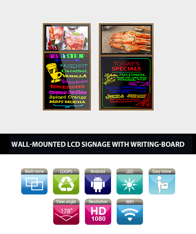 | DESCRIPTION | Wall-mounted LCD Signage with Writing-board | |