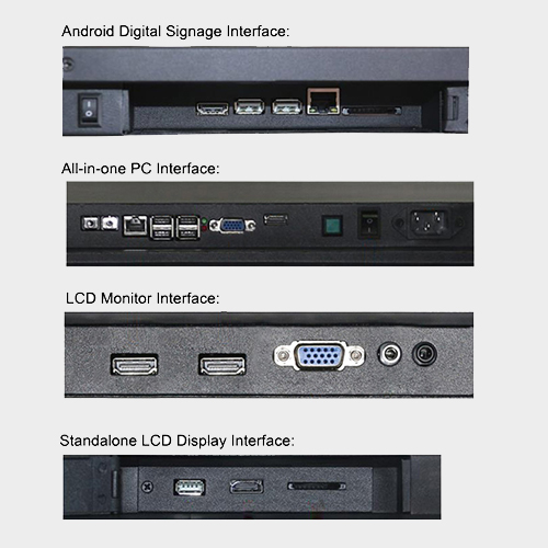 | Touch screen | Capacitive(PCAP)Touch/Resistive touch/IR touch |