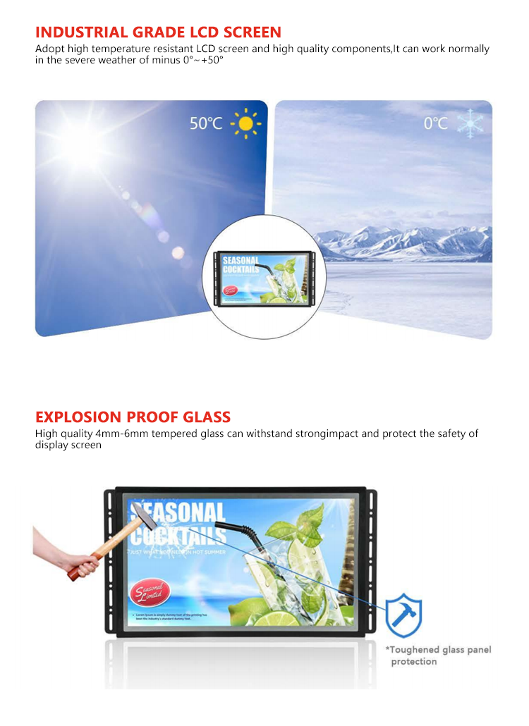 | Touch screen | Capacitive(PCAP)Touch/Resistive touch/IR touch |