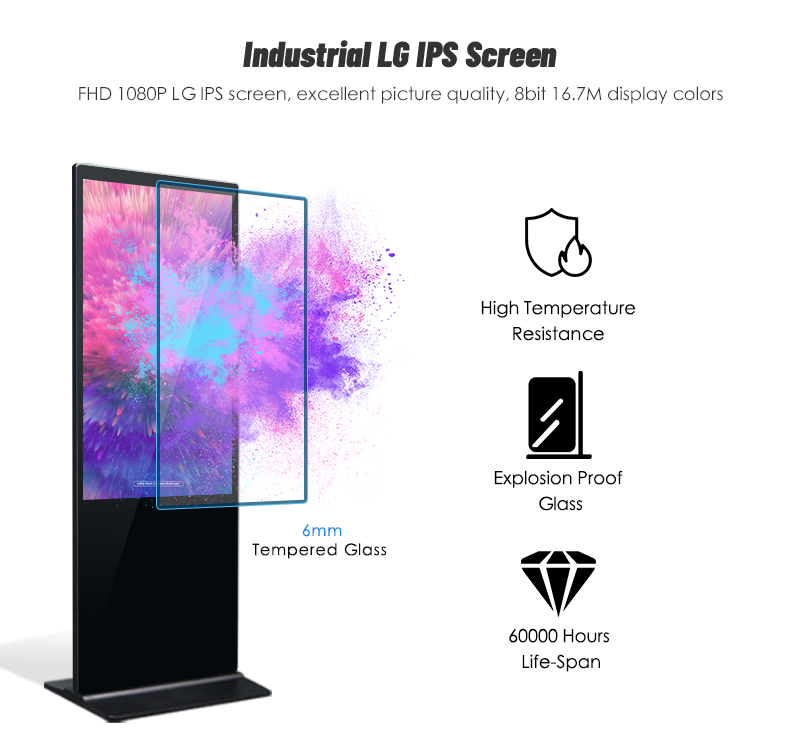 | Display size | 393*698.4mm | 530 *942mm | 605 *1075mm | 681*1210mm | 805*1430mm | |